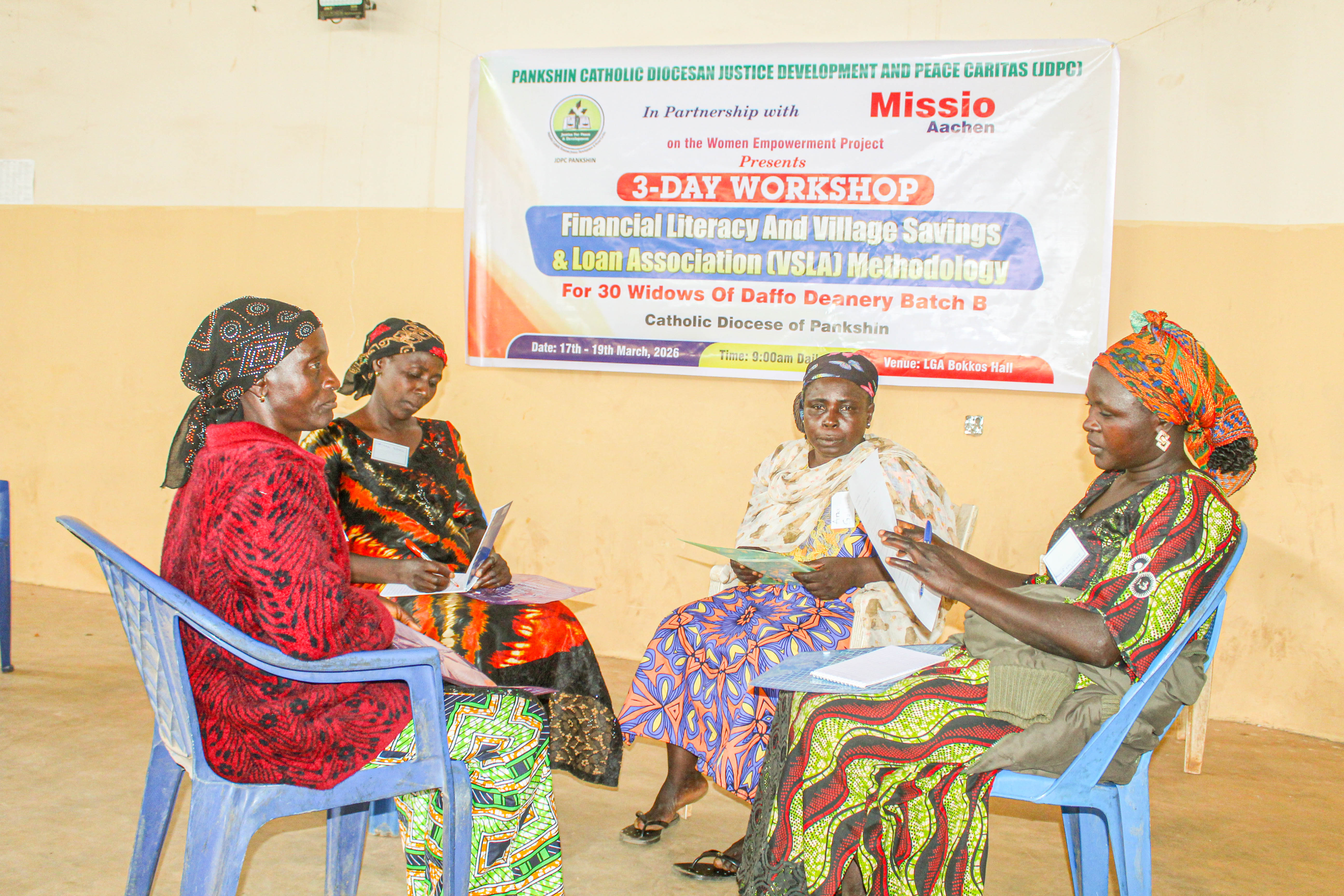 JDPC Pankshin has officially commenced a 3-Day Financial Literacy and Village Savings & Loan Association (VSLA) Methodology Workshop for 60 widows of the Catholic Diocese of Pankshin, with 30 women participating from Chip Deanery and 30 women from Mangu Deanery. The workshop is running concurrently as part of our strategic commitment to strengthening economic resilience and sustainable livelihoods among vulnerable women.
