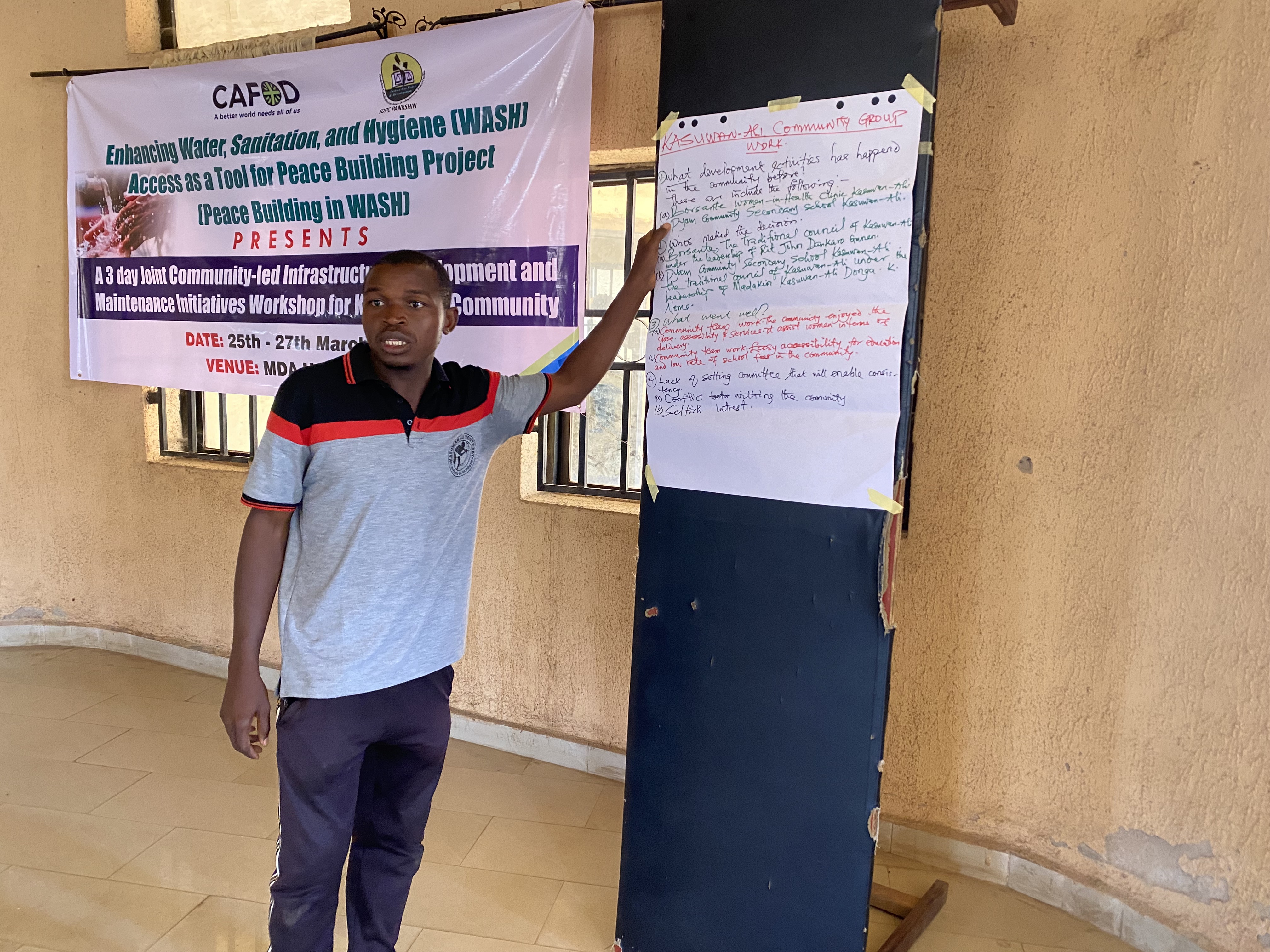Through the project βEnhancing Water, Sanitation, and Hygiene (WASH) Access as a Tool for Peacebuilding,β JDPC Pankshin, with the support of Catholic Agency for Oversea Development, CAFOD, is taking proactive steps to prevent such outcomes. Over a 4-day concurrent workshop in Kasuwa Ali and Sabon Gari communities, WASHCOM members are being trained and supported to establish community-based early warning and reporting mechanisms for WASH-related and general community disputes. This initiative empowers communities to identify issues early, report them responsibly, and resolve conflicts peacefully, ensuring that global lessons translate into local solutions and lasting peace.