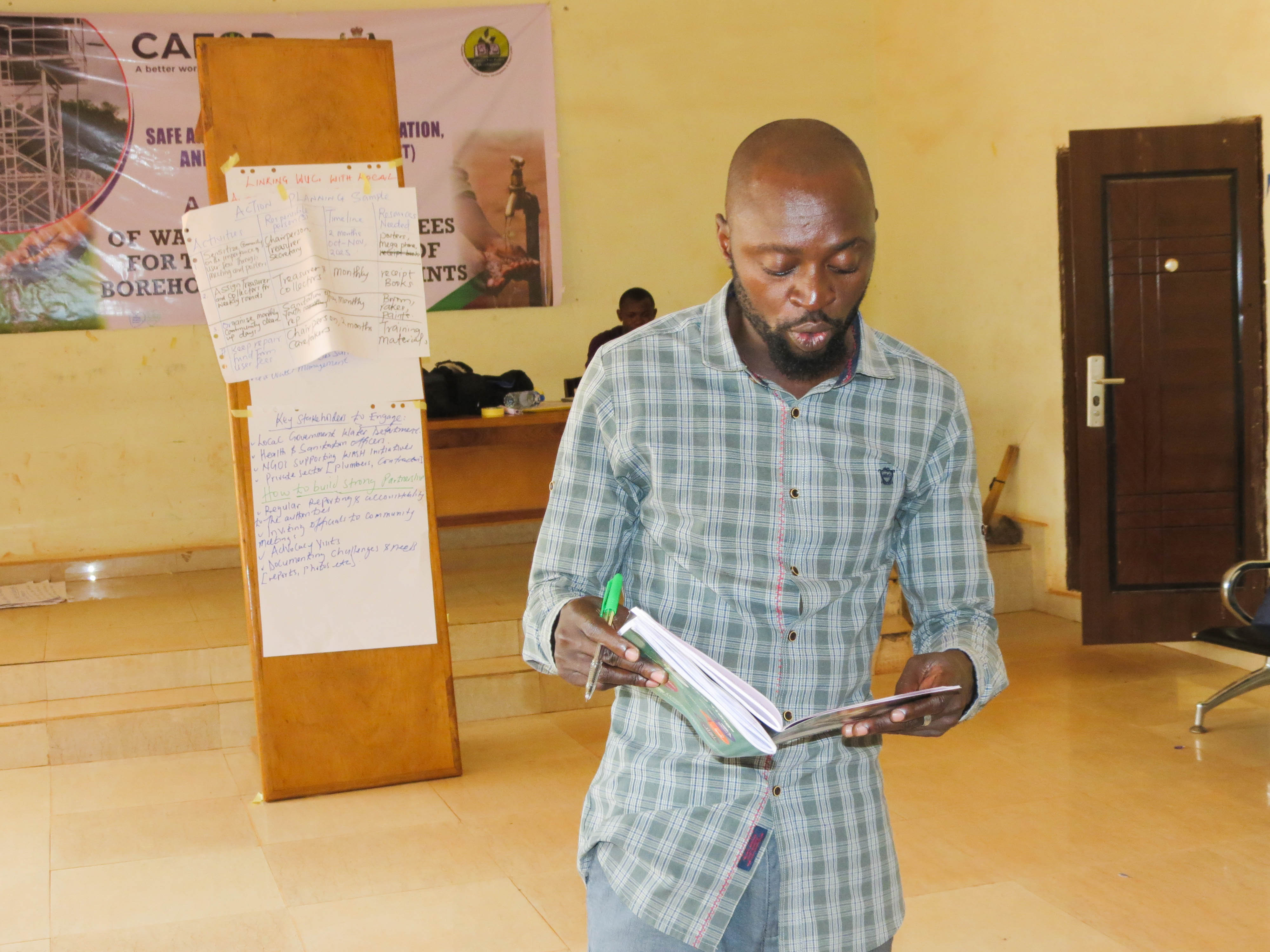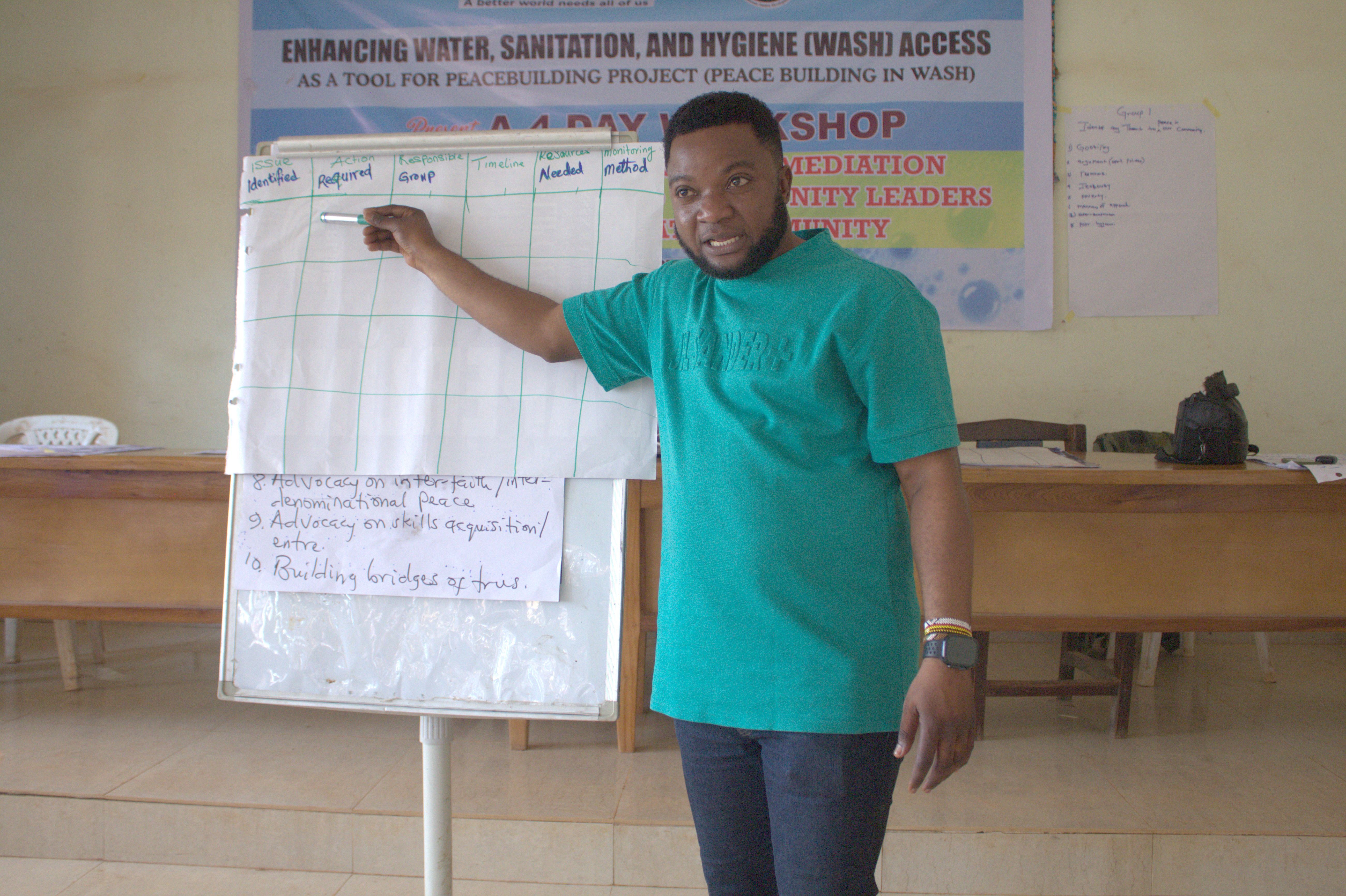 To ensure these lessons take root, the group developed a practical Action Plan, mapping clear steps each participant and committee will take to prevent and manage WASH-related conflicts. By the end of the session, community leaders left with concrete strategies and a shared commitment to maintain clean water, sanitation, and hygiene as tools for peace and development.