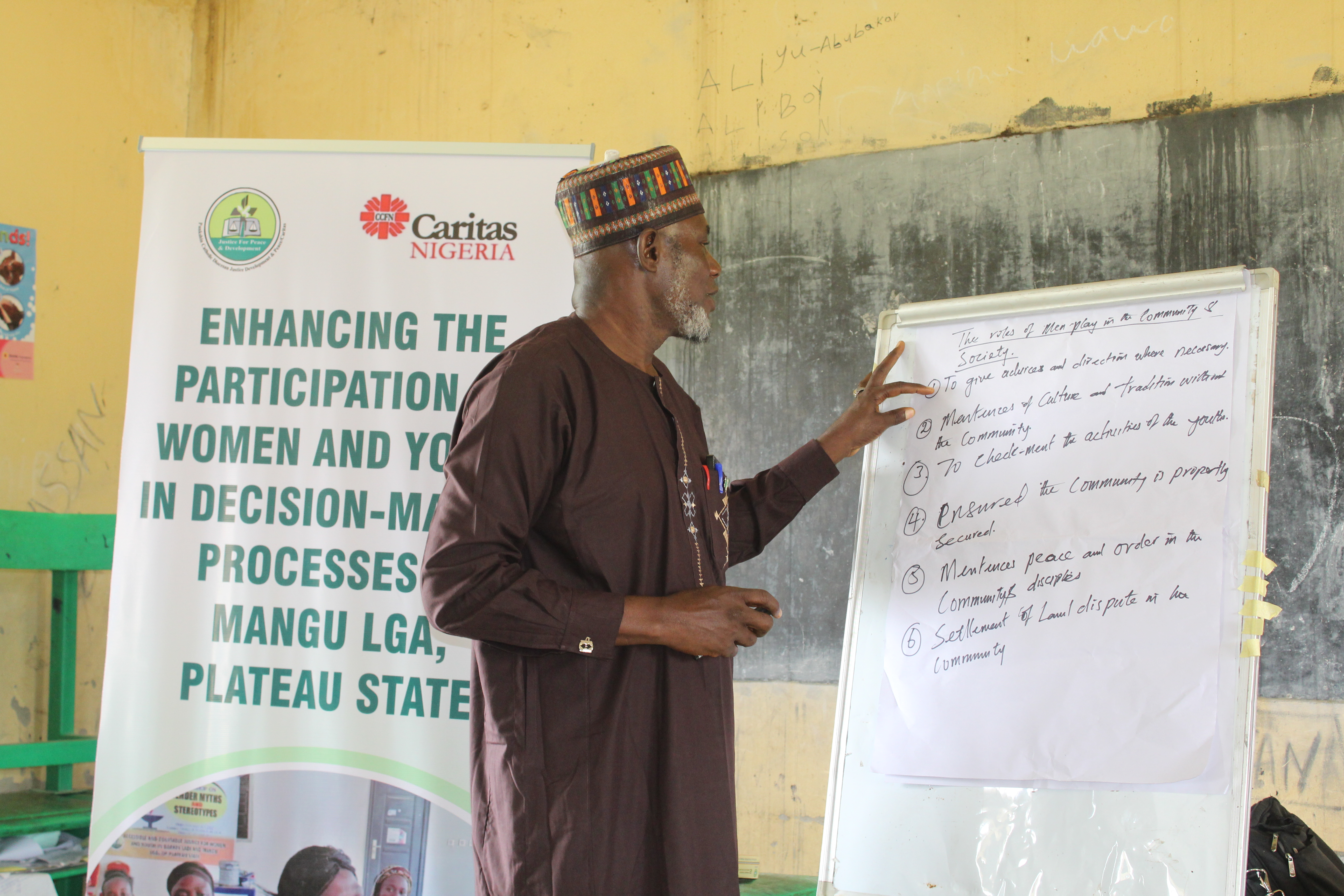 As part of the project βEnhancing the Participation of Women and Youth in Decision-Making Processes in Mangu LGA, Plateau State,β funded by Catholic Caritas Foundation of Nigeria (CCFN) and implemented by JDPC Pankshin, an advocacy visit was conducted to key stakeholders in the Mangu Halle community. The purpose of the visit was to introduce the project and engage community leaders, elders, women, youth, and persons with disabilities in meaningful dialogue.