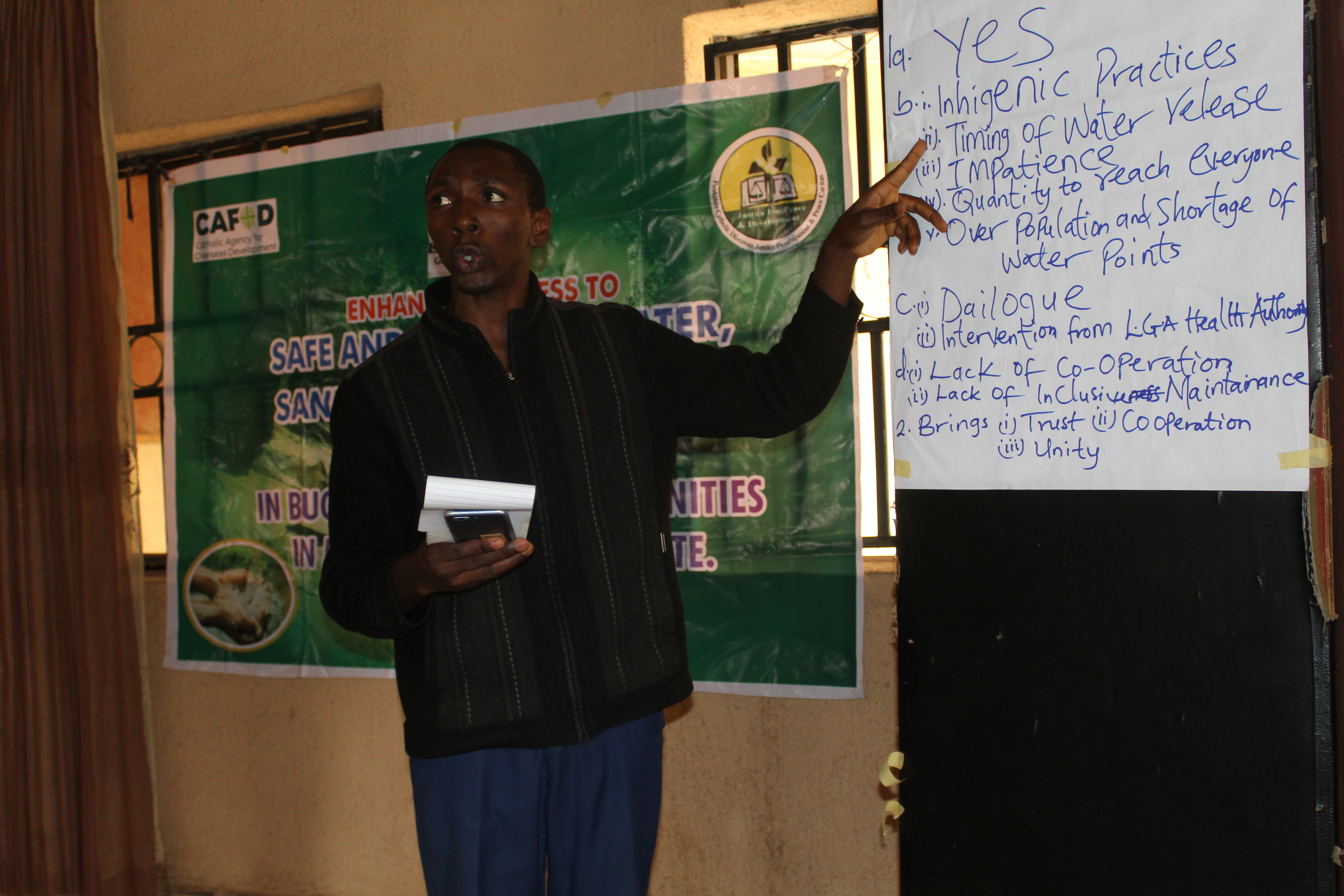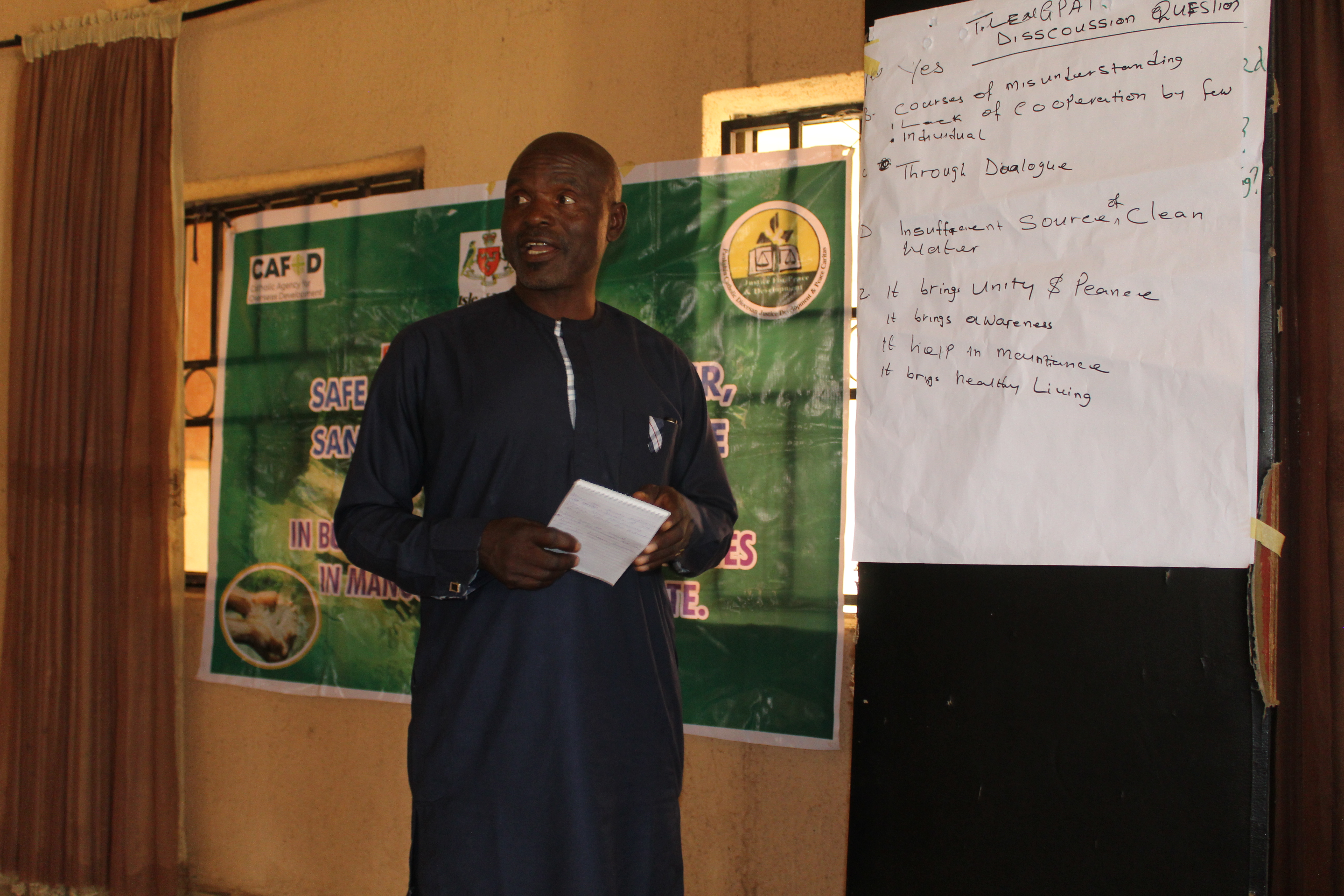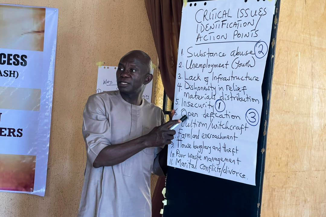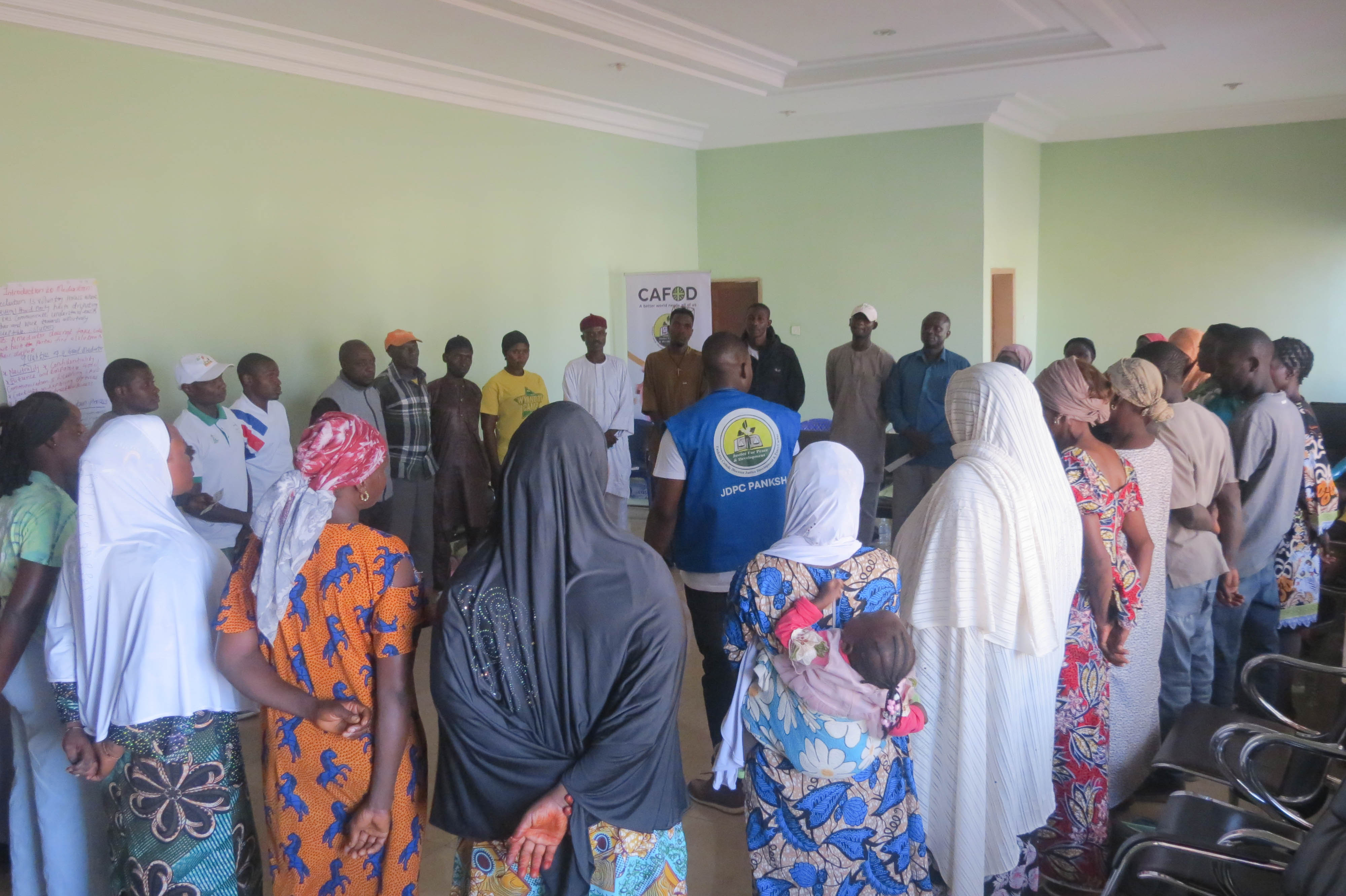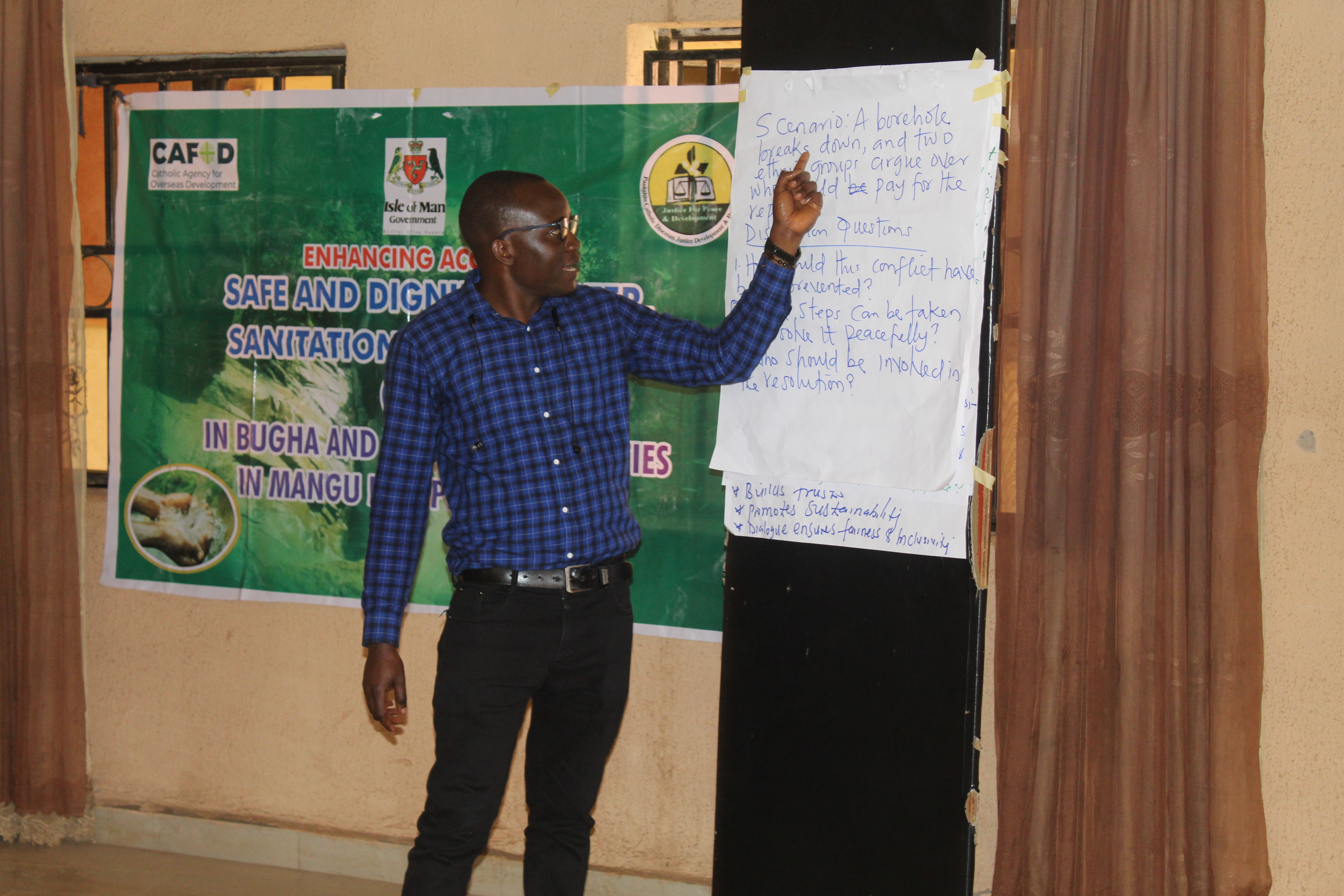 JDPC Pankshin, in partnership with CAFOD, is hosting a 4-day workshop on Conflict Resolution and Mediation for WASH Committees and community leaders of Bungha (Gyaghat) community under the project βEnhancing Water, Sanitation, and Hygiene (WASH) Access as a Tool for Peacebuilding.β The training aims to strengthen participantsβ capacity to resolve disputes, foster unity, and promote peaceful coexistence within their communities. Through interactive sessions, the facilitator engaged participants in discussions, group work, and presentations, using real-life scenarios and visual illustrations to deepen their understanding of conflict, its causes, and its effects.