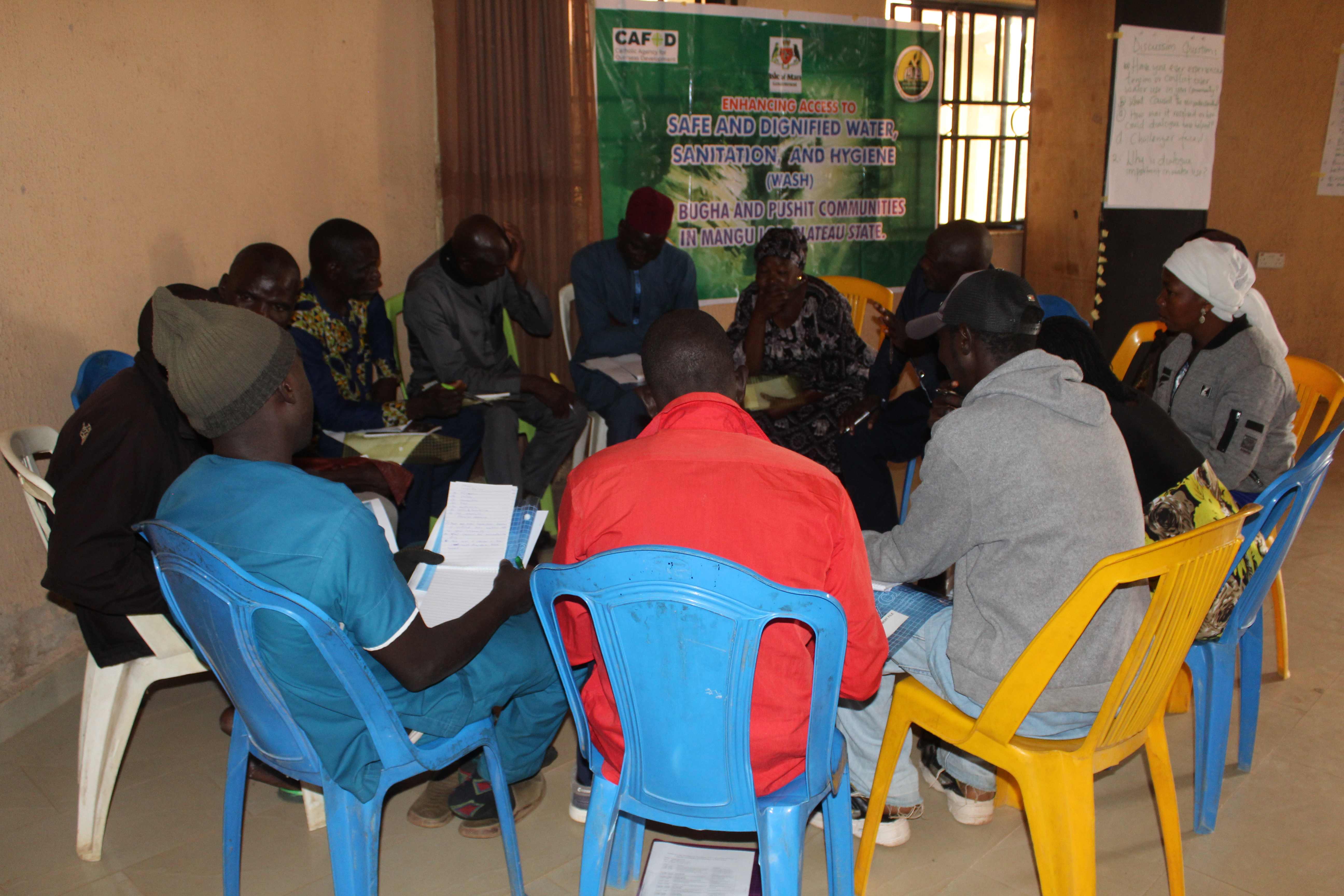 Today marks the launch of a four-day training to equip Water User Committees (WUCs) in Bungha and Pushit communities, Mangu LGA. For years, these communities struggled without consistent access to safe and dignified water. Thanks to the collaborative effort of JDPC Pankshin and CAFOD, each community now has a newly constructed motorized borehole, a reliable lifeline for the entire communities.