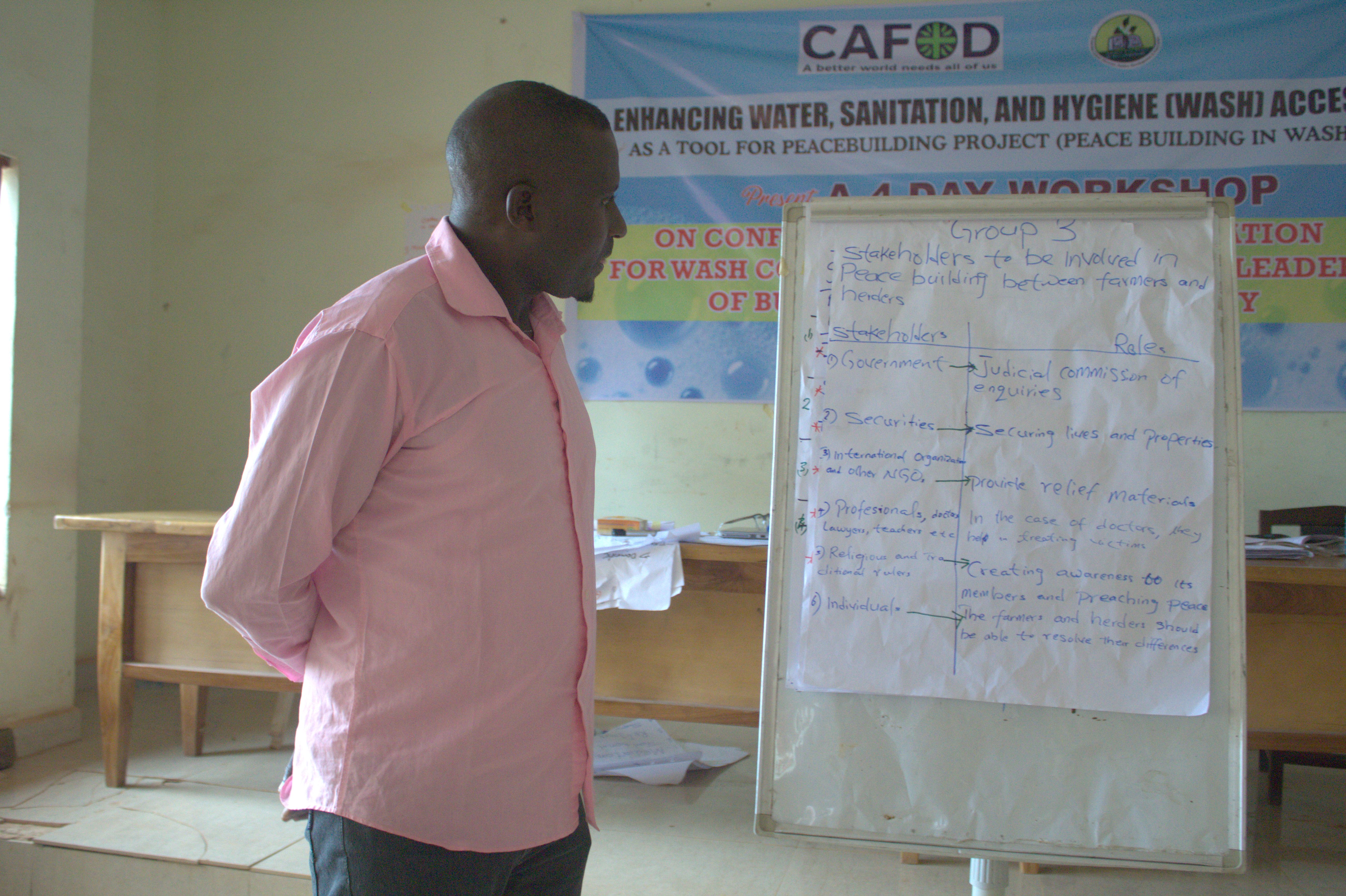 The final day of the 4-day workshop organized by JDPC Pankshin in partnership with CAFOD under the project βEnhancing Water, Sanitation, and Hygiene (WASH) Access as a Tool for Peacebuildingβ was dedicated to developing action plans that will guide participants in applying the knowledge gained during the training. Using action points, participants outlined practical steps for promoting peaceful coexistence, resolving conflicts, and strengthening community collaboration around WASH services. This exercise provided a clear roadmap for sustainable peacebuilding in their communities.
