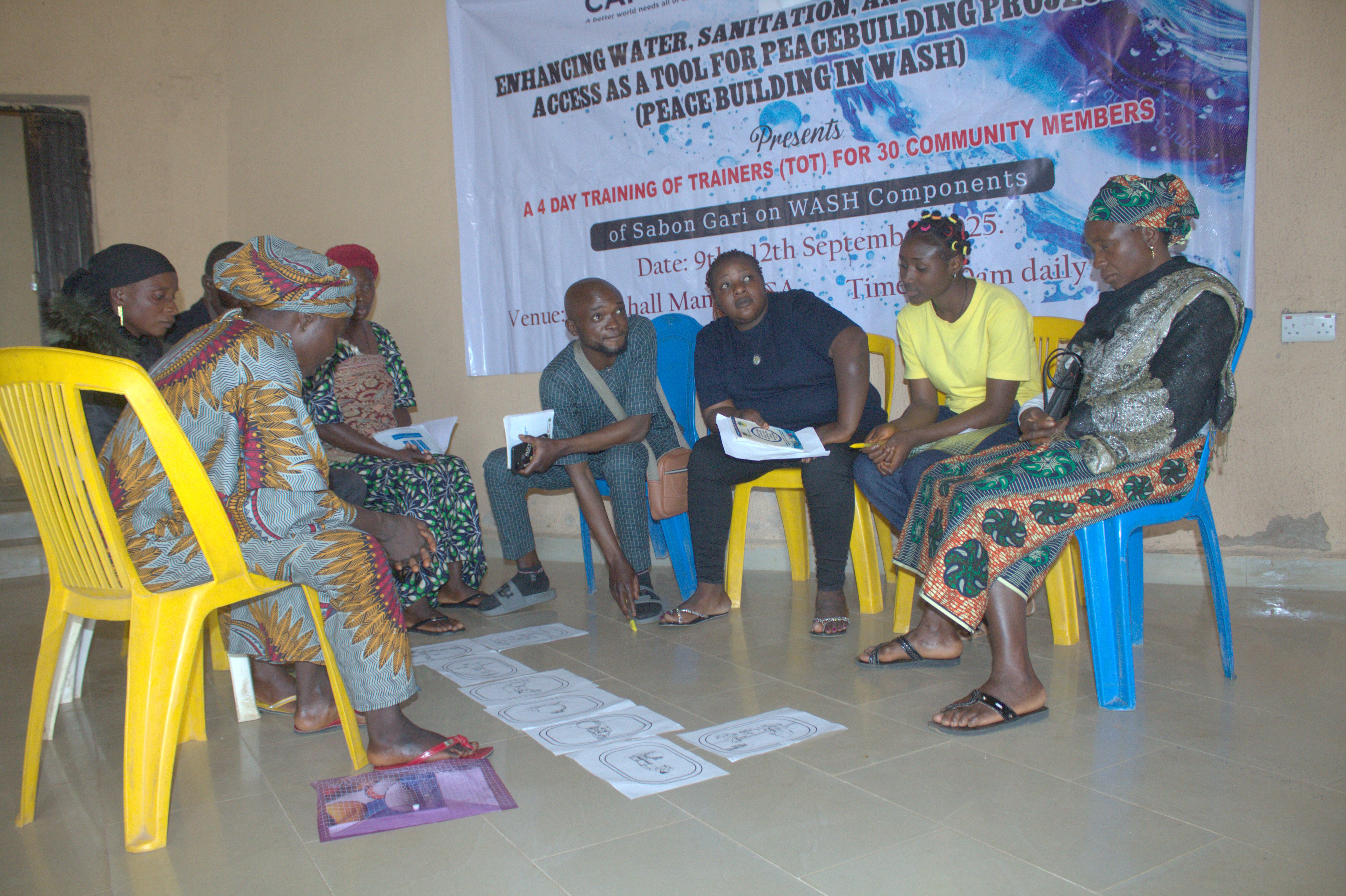 The sessions are highly engaging, with facilitators and participants actively contributing to discussions. Group work plays a significant role in enhancing learning, as participants share diverse perspectives and real-life experiences, harmonizing ideas to strengthen collective understanding. This initiative is designed to build local capacity, promote healthier lifestyles, and enhance peaceful coexistence through improved WASH practices, creating a stronger and more resilient Sabon Gari community.