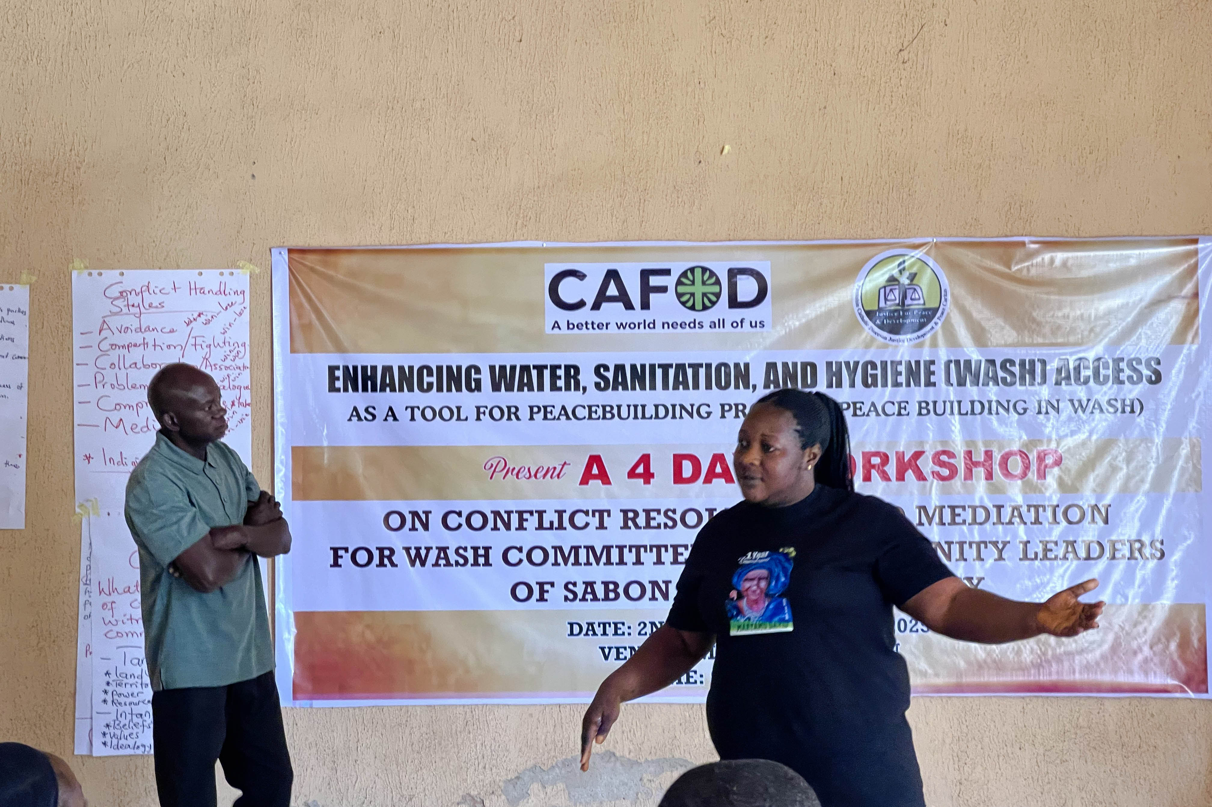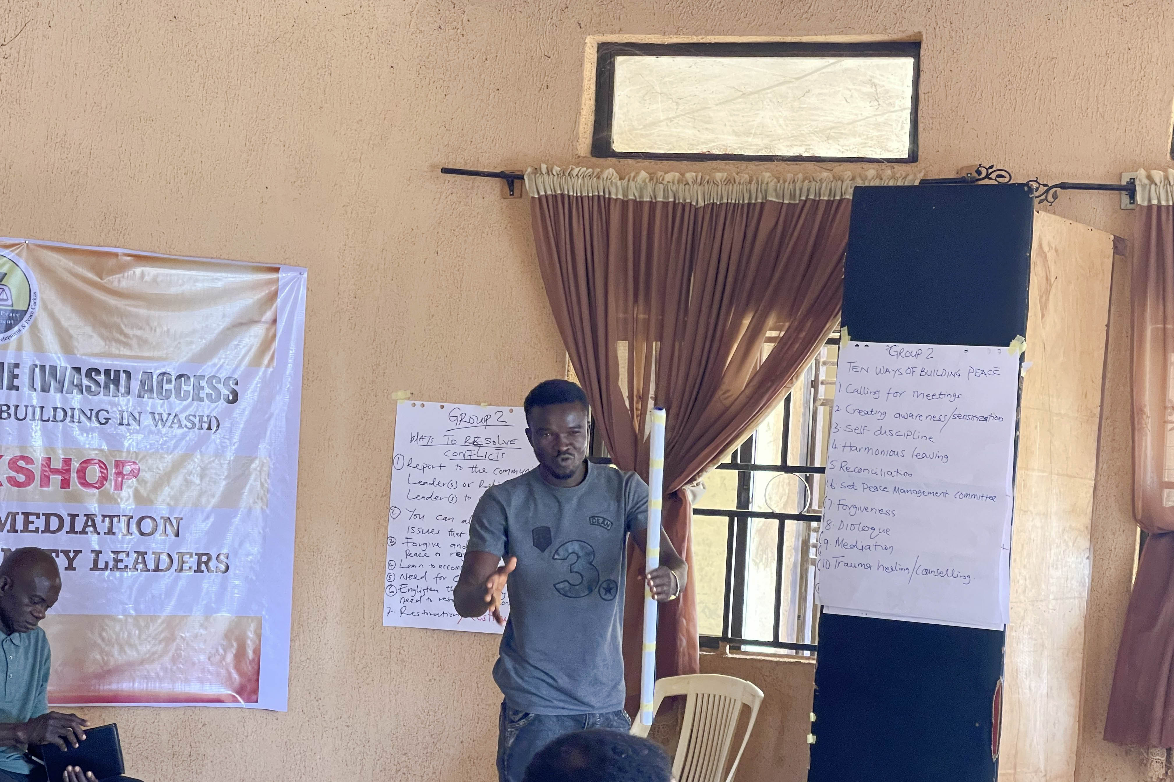On Day 2 of the ongoing 4-day workshop organized by JDPC Pankshin in partnership with CAFOD under the project βEnhancing Water, Sanitation, and Hygiene (WASH) Access as a Tool for Peacebuilding,β participants explored practical strategies for building peace and resolving conflicts within their communities. The sessions focused on communication as a vital tool for conflict resolution, helping participants understand how effective dialogue can prevent disputes and strengthen relationships.